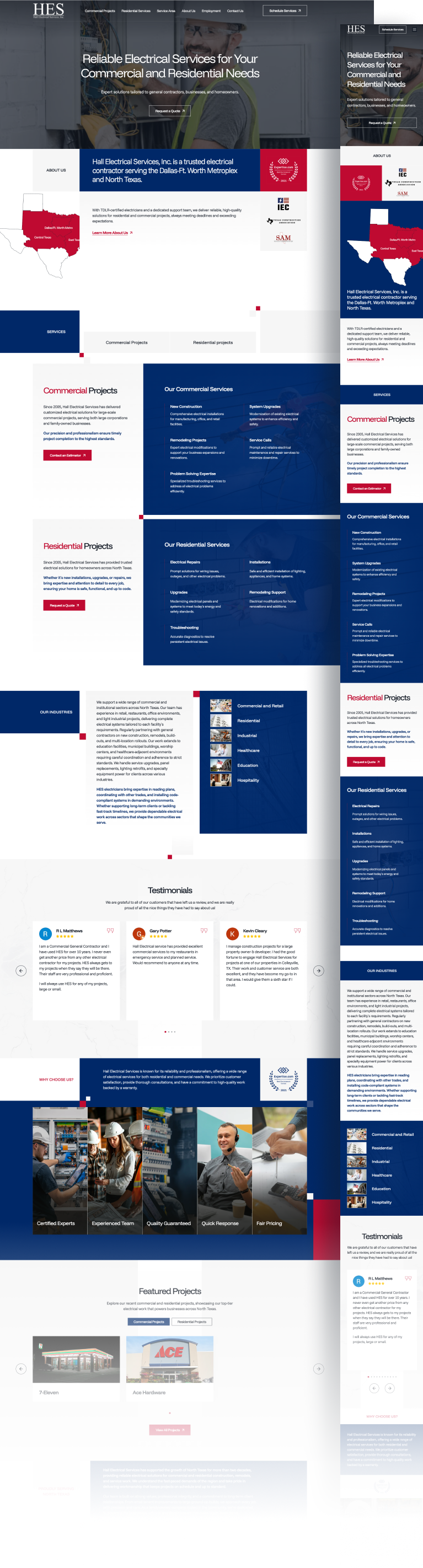 Hall Electrical Services is a well-established electrical contractor serving commercial and residential clients throughout the DFW area. While the business itself was strong and relationship-driven, their website was outdated and no longer reflected the professionalism or credibility of the company.
