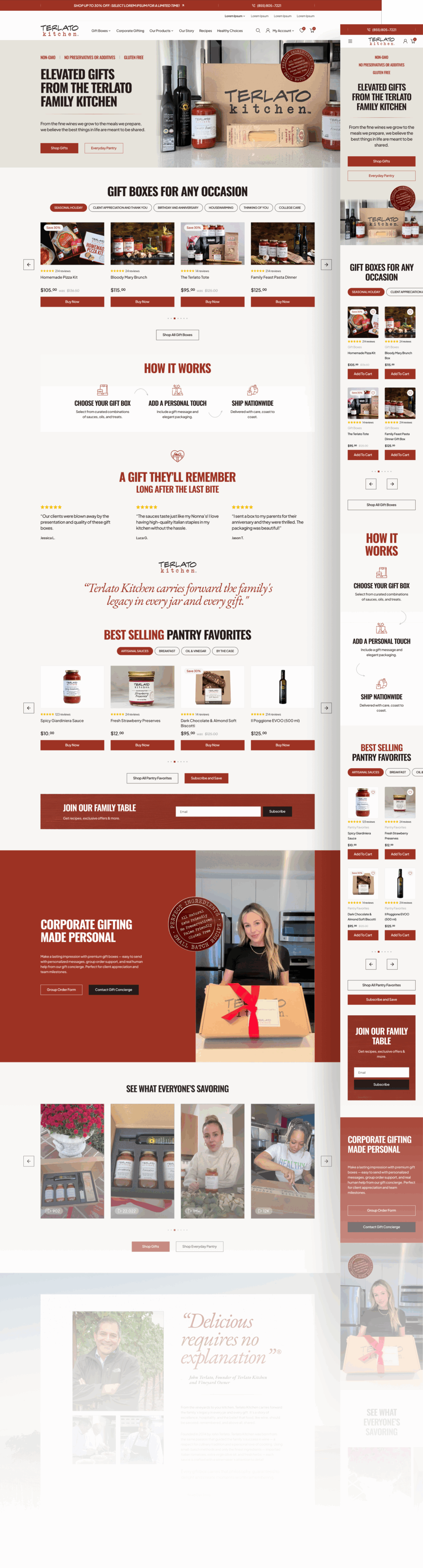 Terlato Kitchen, the culinary extension of the renowned Terlato Wine Group, had a website that functioned more like a pantry catalog than a premium gifting destination. So, Terlato Kitchen came to us with a clear goal: transform their online store from a simple product catalog into a destination for thoughtful gifting.
